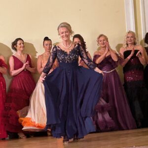 Był pokaz mody sukien balowych projektantki Żanny Moryson, w którym wystąpiły znane kobiety biznesu i świata aktorskiego. Wśród nich świetnie bawiła się Halina Rowicka, słynna Ewa Talar z serialu „Dom”.